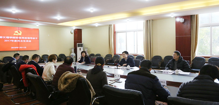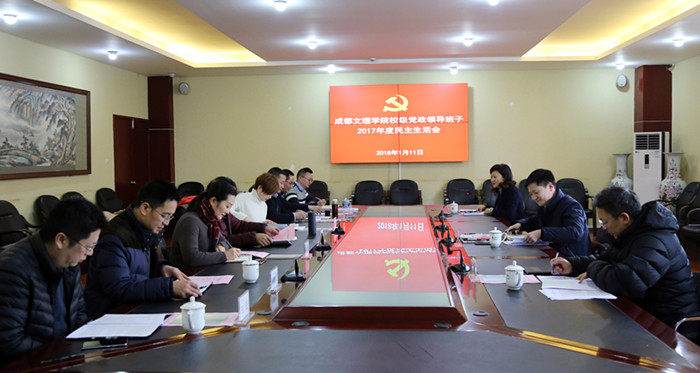 学校党政领导班子于1月11日召开2017年度民主生活会,以认真学习领会习近平新时代中国特色社会主义思想,坚定维护以习近平同志为核心的党中央权威和集中统一领导,全面贯彻落实党的十九大和省委十一届二次全会决策部署,为推动治蜀兴川再上新台阶贡献文理力量为主题,重点对照党章,对照坚定维护以习近平同志为核心的党中央权威和集中统一领导的重大政治要求,对照上级转变作风规定精神,对照初心和使命,联系学校工作,联系落实上级转变作风规定精神,联系贯彻落实党的十九大和省委十一届二次全会决策部署的实际,进行自我检查、党性分析,开展批评和自我批评。